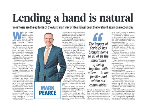 Volunteering Australia CEO, Mark Pearce writes about volunteering bringing people together to mark National Volunteer Week 2022 and the lead [...]