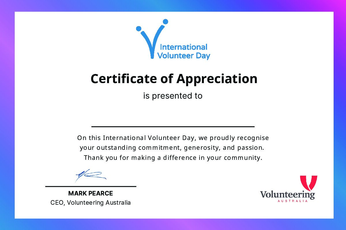 International Volunteer Day reflects this vision. It encourages a collective commitment to ensuring everyone can participate, feel valued and contribute in ways that strengthen connections and belonging across Australia.