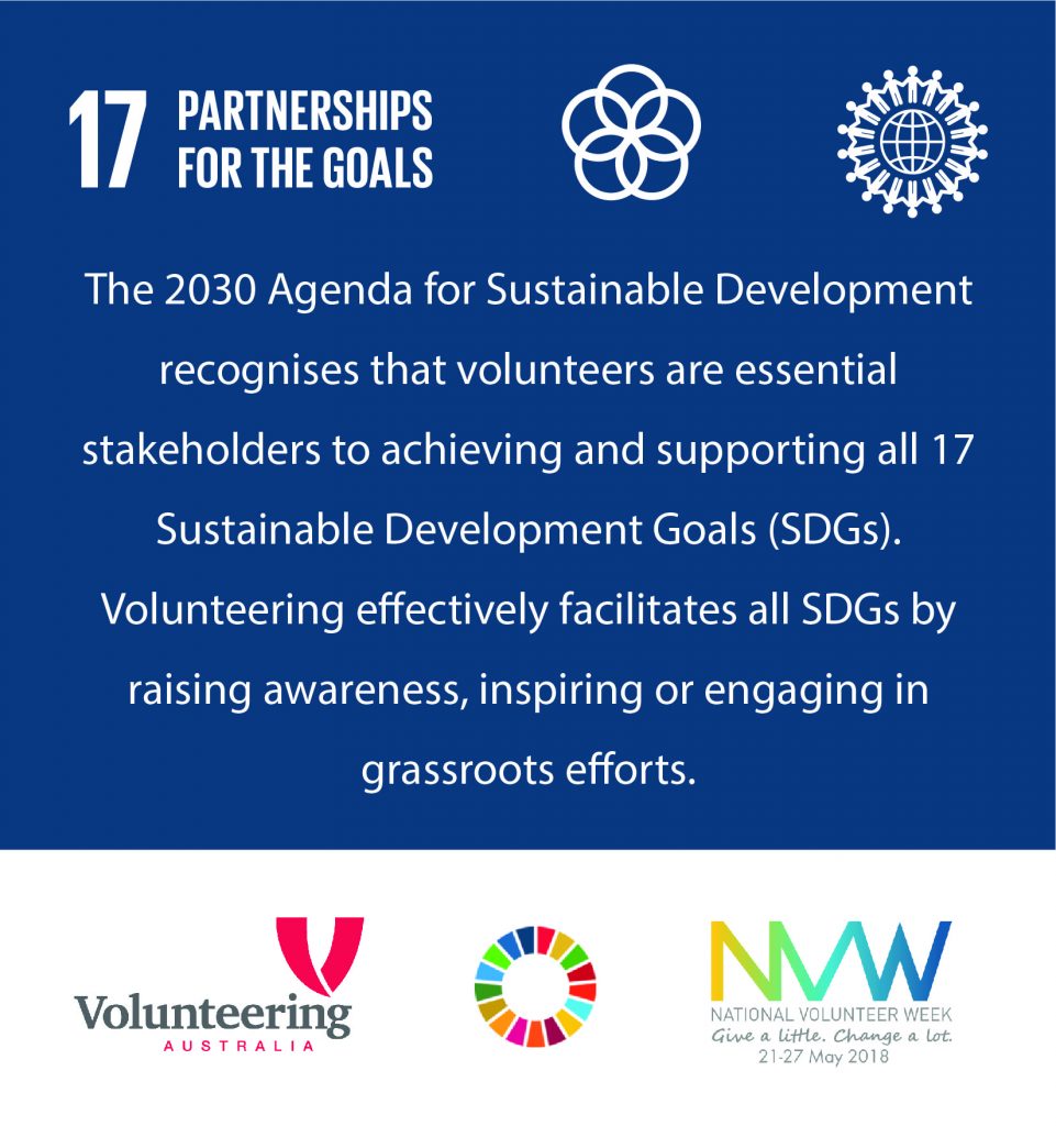 Volunteers are indispensable to achieving the goals of the SDGs. The 2030 Agenda recognises that volunteers are stakeholders to achieving the 17 SDGs. Volunteers effectively facilitate all Sustainable Development Goals by raising awareness, inspiring or engaging in grassroots efforts.